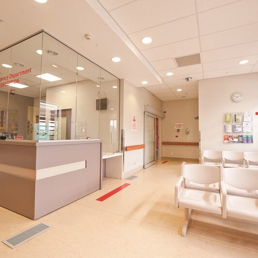 The 2400m² acute services block houses the privately run Wanganui Accident and Medical, accident and emergency, a critical care ward with five beds, a maternity ward with three birthing suites, a pediatrics ward, and support areas.